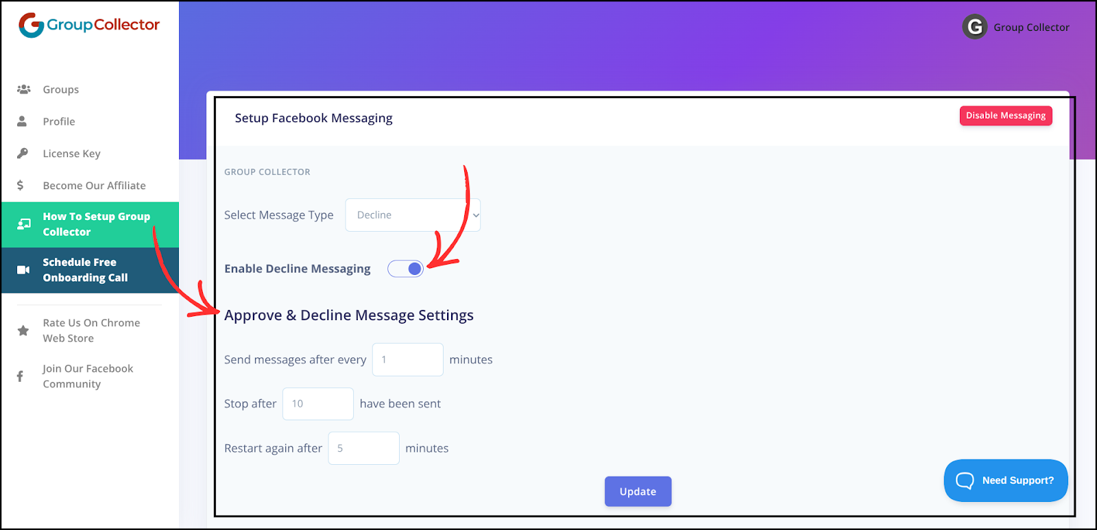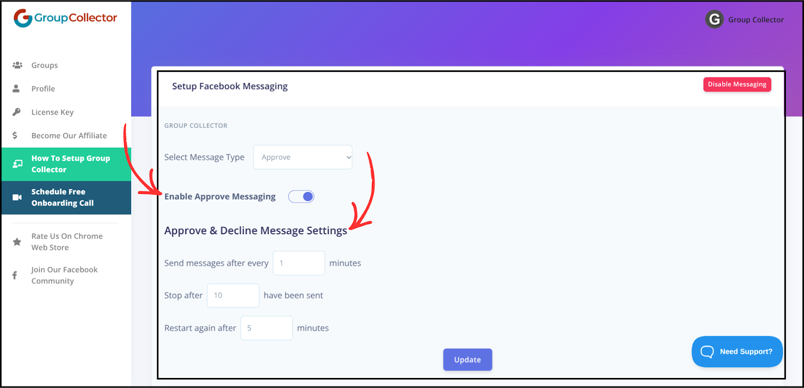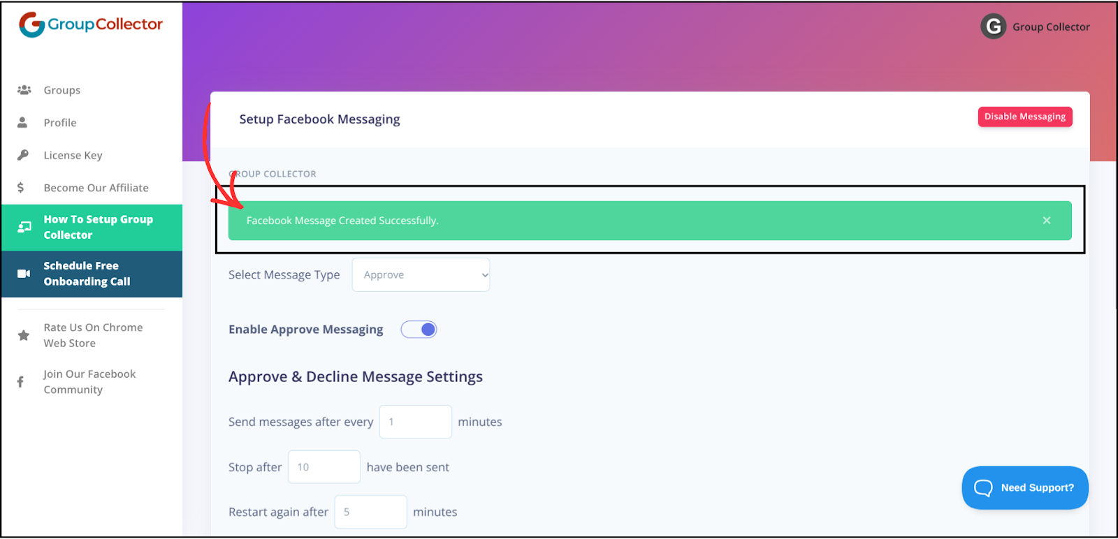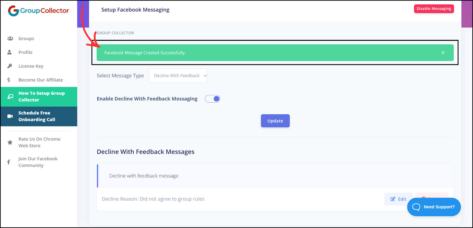 The Group Collector’s Messages feature automatically sends Facebook messages when members are approved or declined, reducing manual work while maintaining professional, consistent communication.