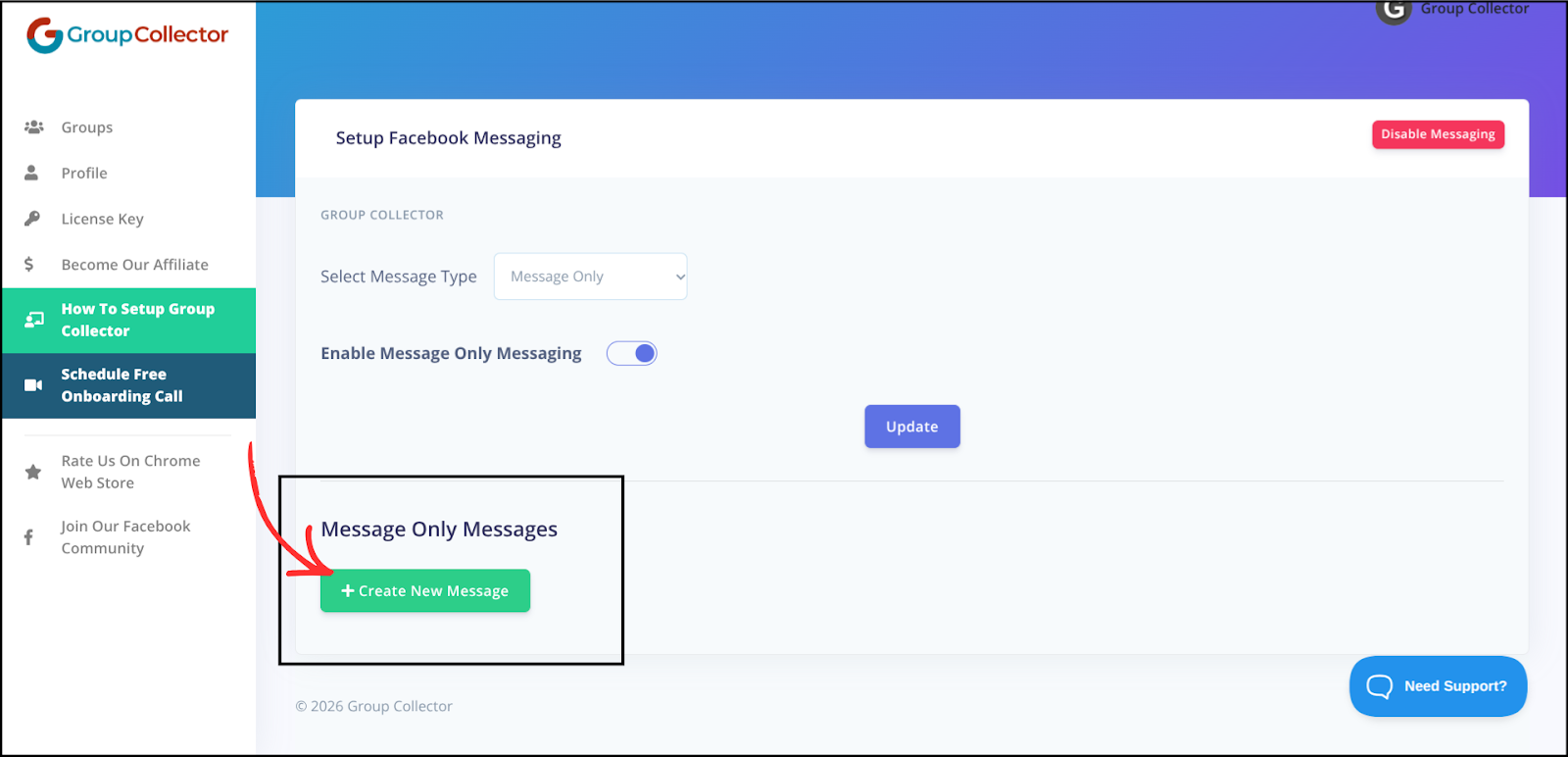 To create a new message-only message, click Create New Message.