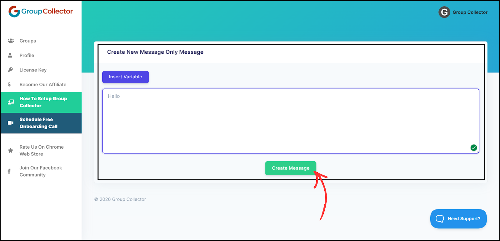 Type the message you want to send and click Create Message.